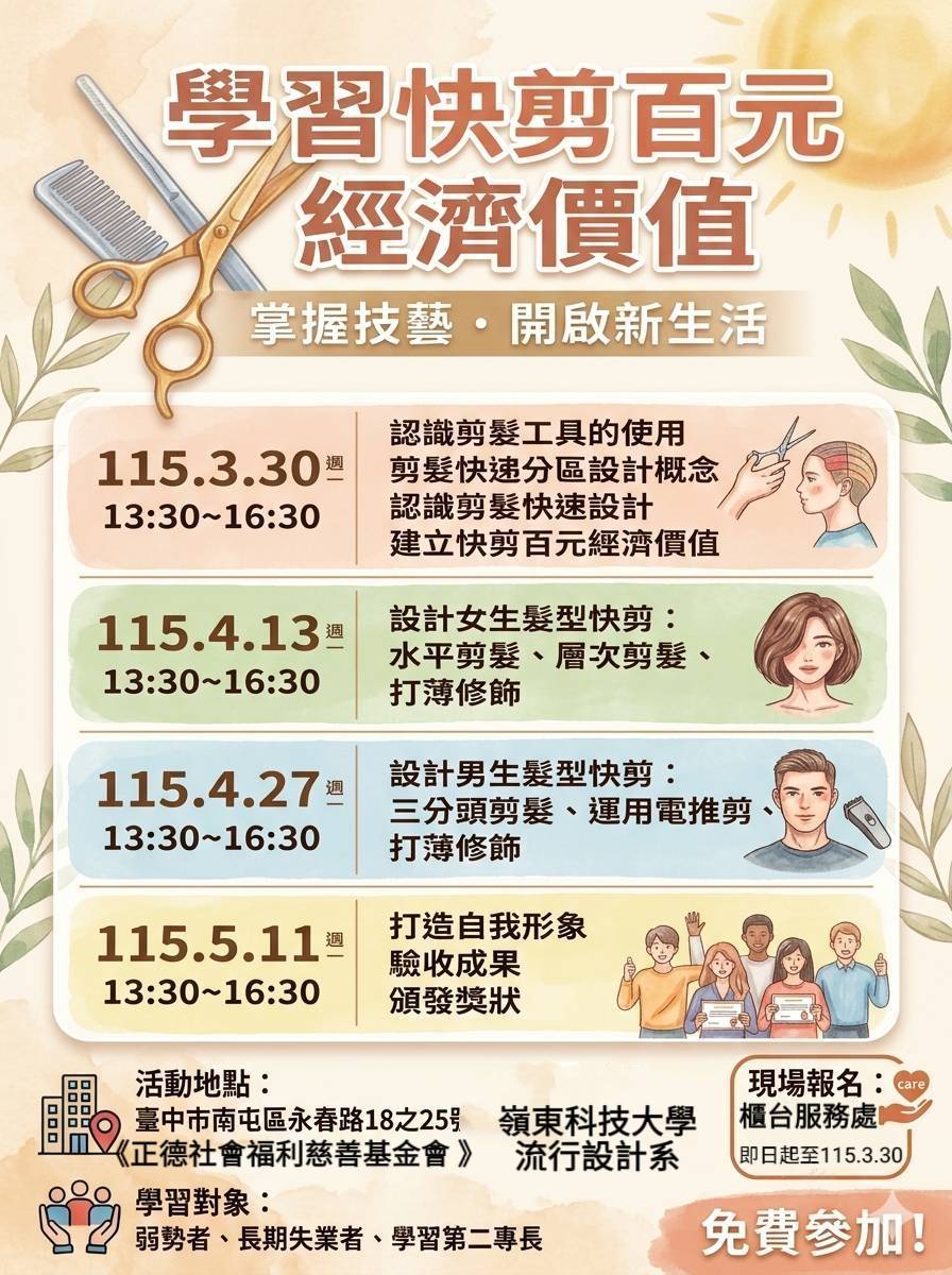 【活動訊息】115學年度流行設計系舉辦大學社會責任實踐計畫(USR)-學習快剪百元經濟價值